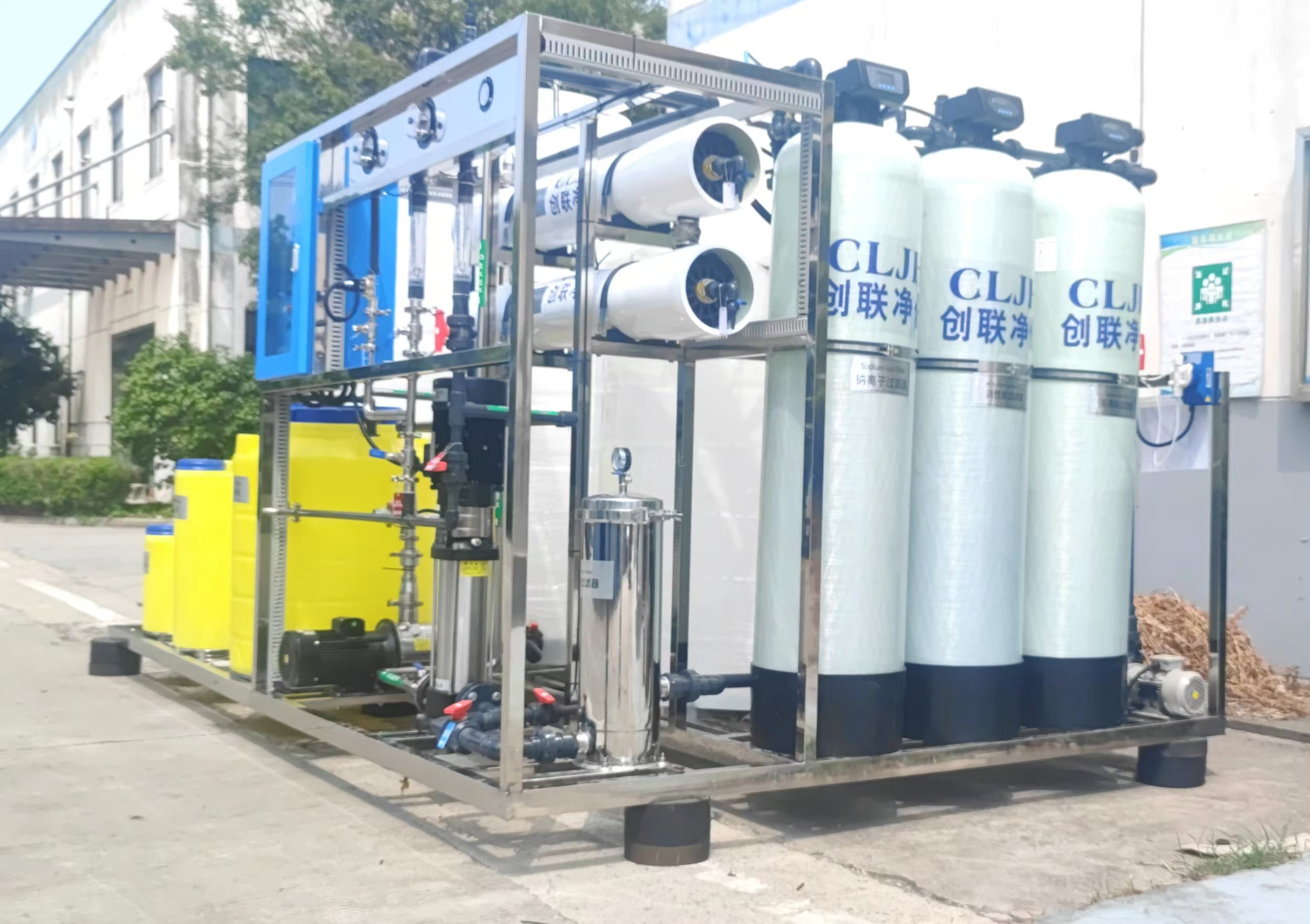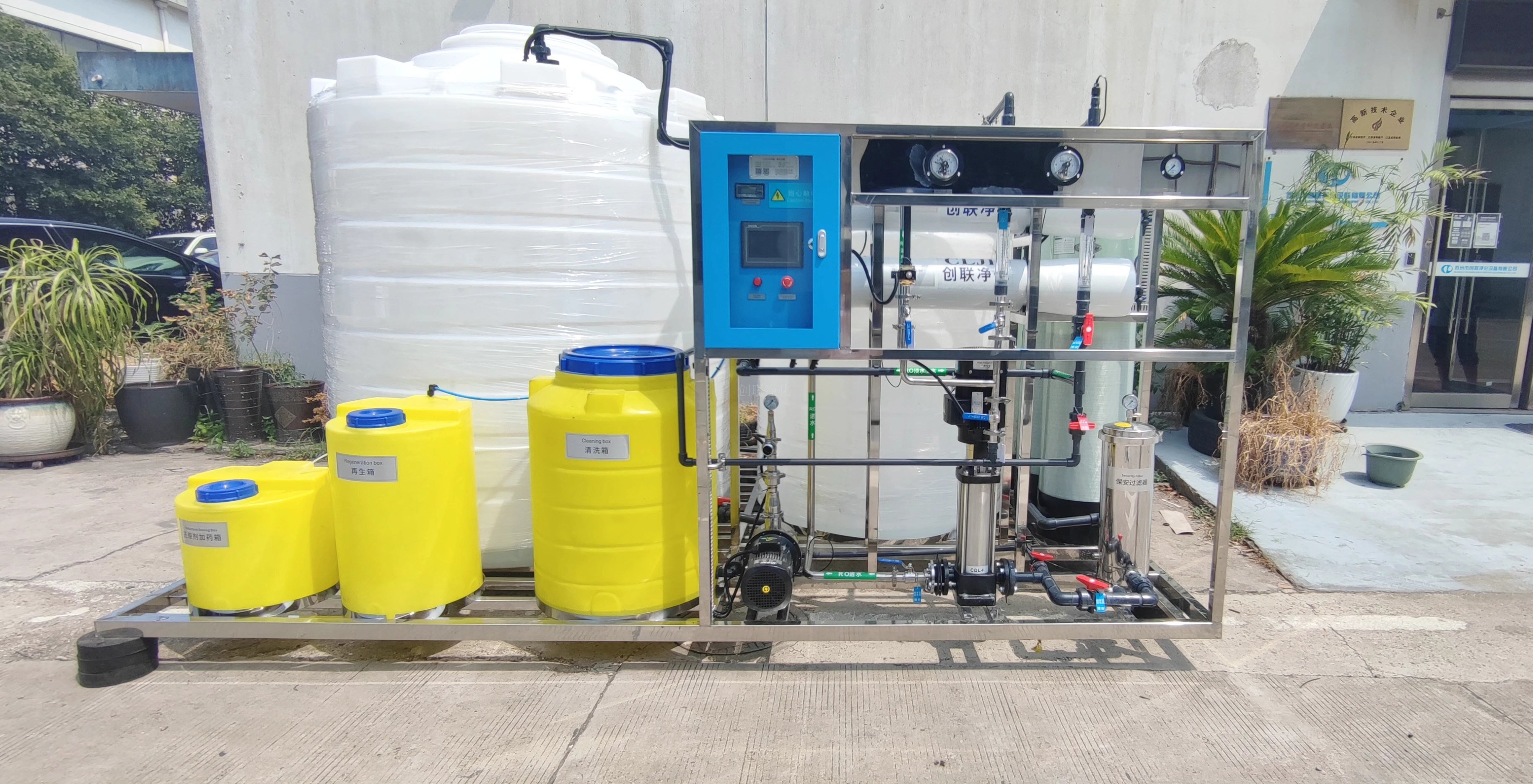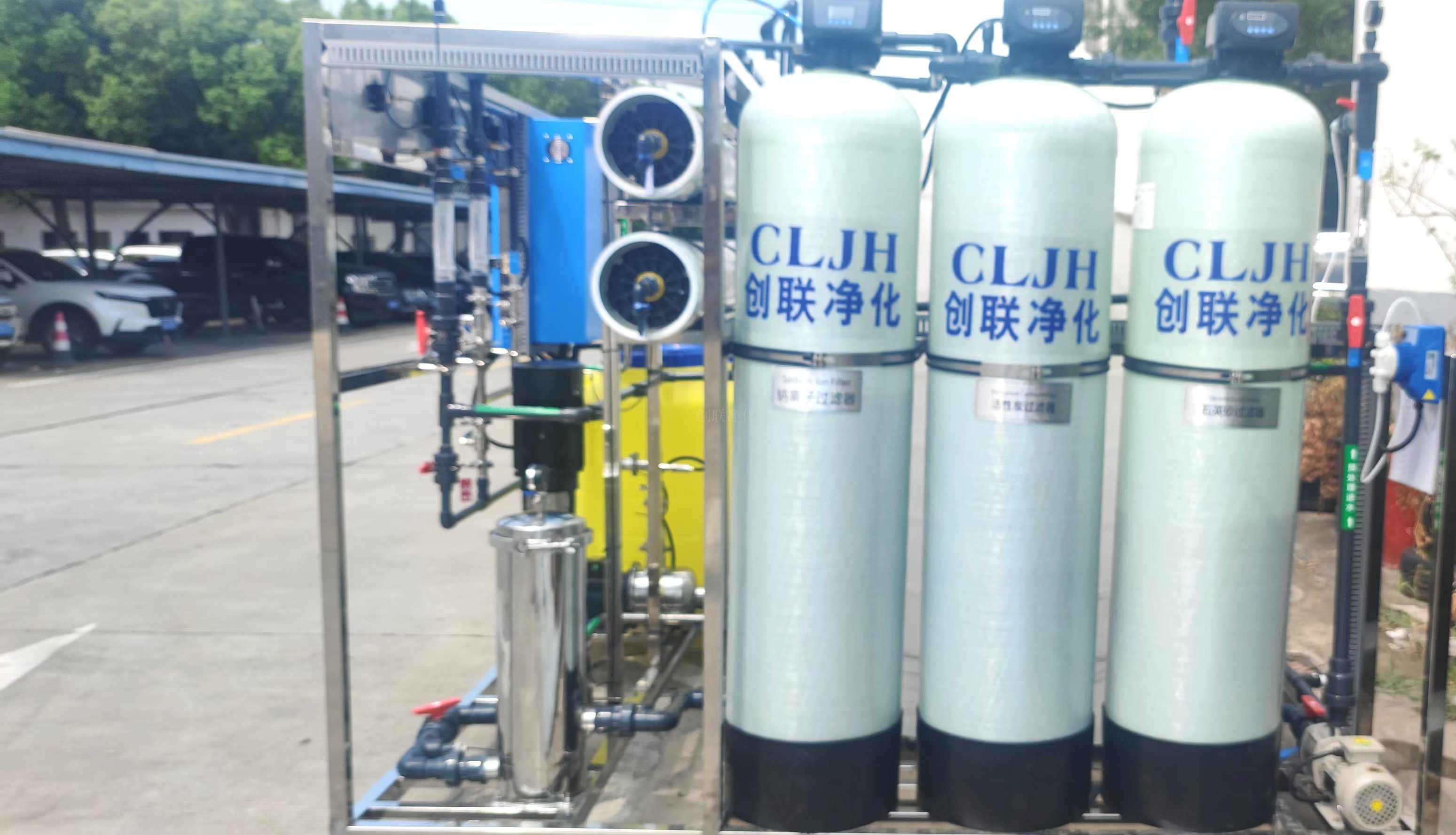 該設(shè)備水質(zhì):電導(dǎo)率≤5μs/cm,處理水量24t/h,純水的用途主要作為化妝品生產(chǎn)、高純納米新材料、高純化學(xué)試劑、高純?nèi)玖系龋幚砉に嚥捎枚壏礉B透+EDI處理工藝。