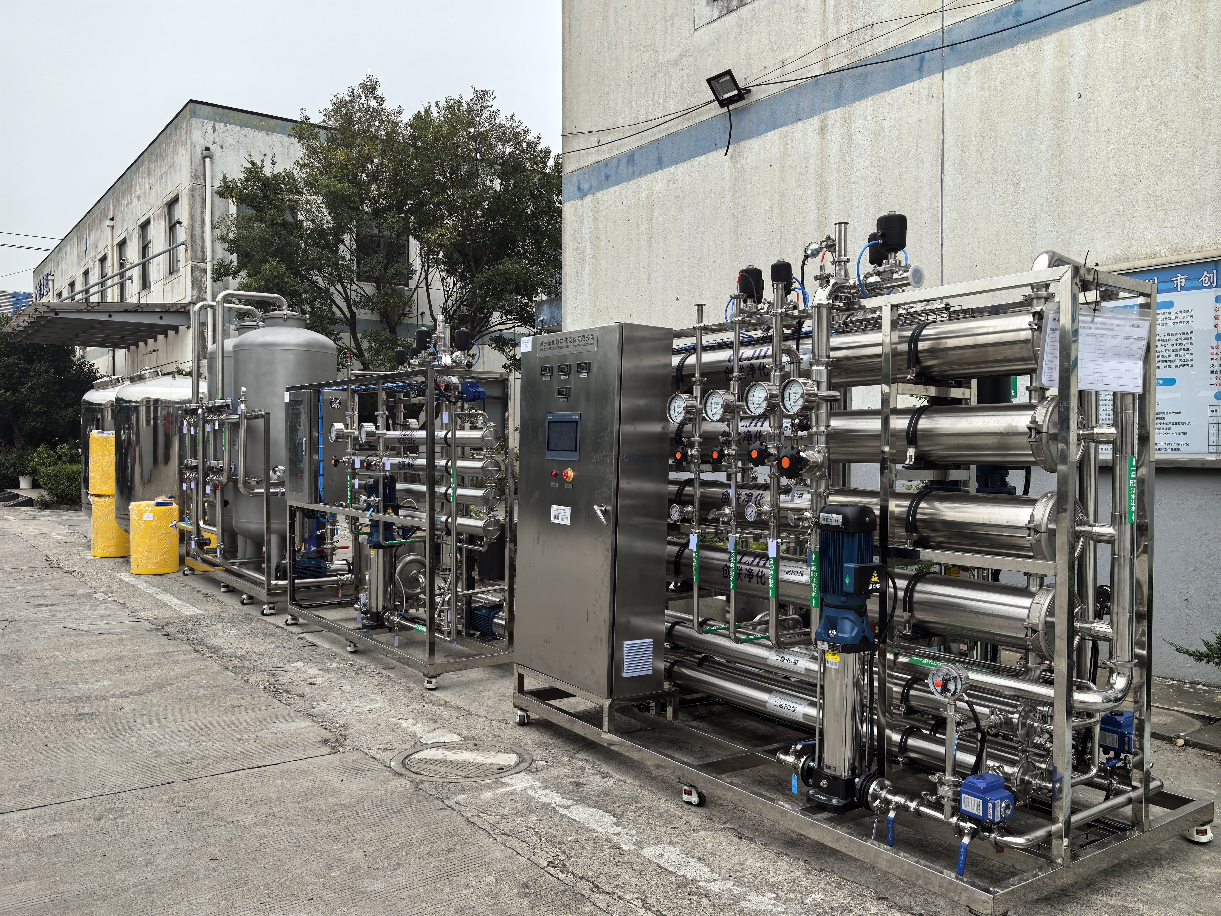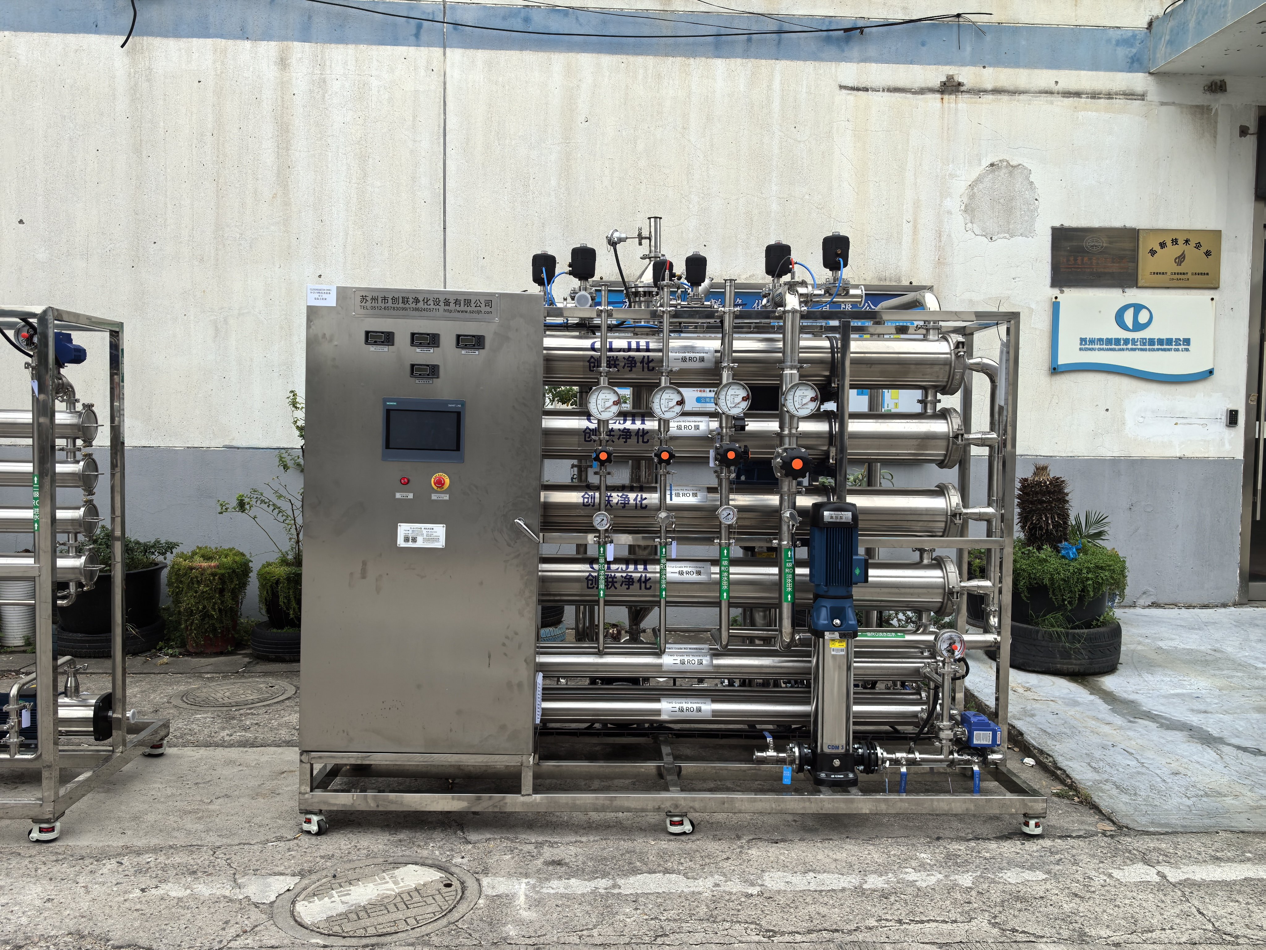 3、二車間新增1套8T/H一級純水系統+2T/H二級純化水系統:一級RO產水電導率≤15μs/cm(25℃),水質滿足二級純化水設備進水要求。二級純化設備出水流量≥2T/H,二級RO出水電導率≤5us/cm(25℃),設備出水水質符合GMP2020版純化水標準;